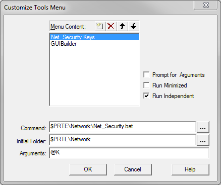 $PRTE\Network\Net_Security.bat $PRTE\Network @K This setting is needed only once in µVision and will work for any project since it uses project related folders.