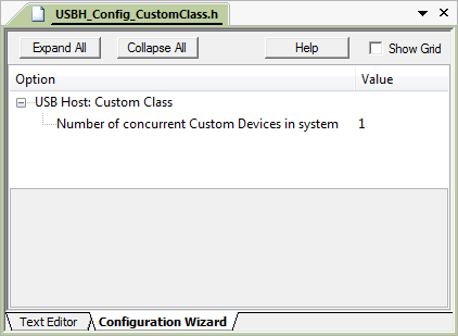 Configuration of the USB Host Custom Class in µVision. More...