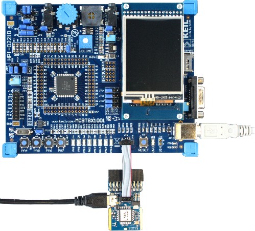 These tools help you get started writing programs and testing the microcontroller and its capabilities. Example applications which run on the MCBTSX1001 are included. Note: